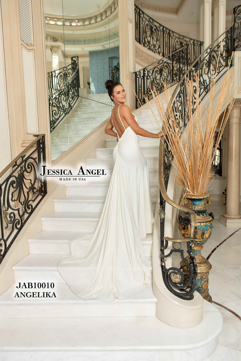 The Jessica Angel formal wear collection offers a wide variety of designer gowns made with expert craftsmanship and impeccable style. Whether you're looking for a simple, classic silhouette or a bold focal point that grabs attention, our selection of luxurious dresses is sure to satisfy your tastes and make a lasting impression on everyone in the room. Jessica Angel is known for chic stretch fabrics that effortlessly enhance a range of body types and embellished materials that look and feel like luxury. Try out a chic floor-length gown to slim and elongate your silhouette. The beautifully draped fabric is not only dramatic; it highlights your form in all the right places.