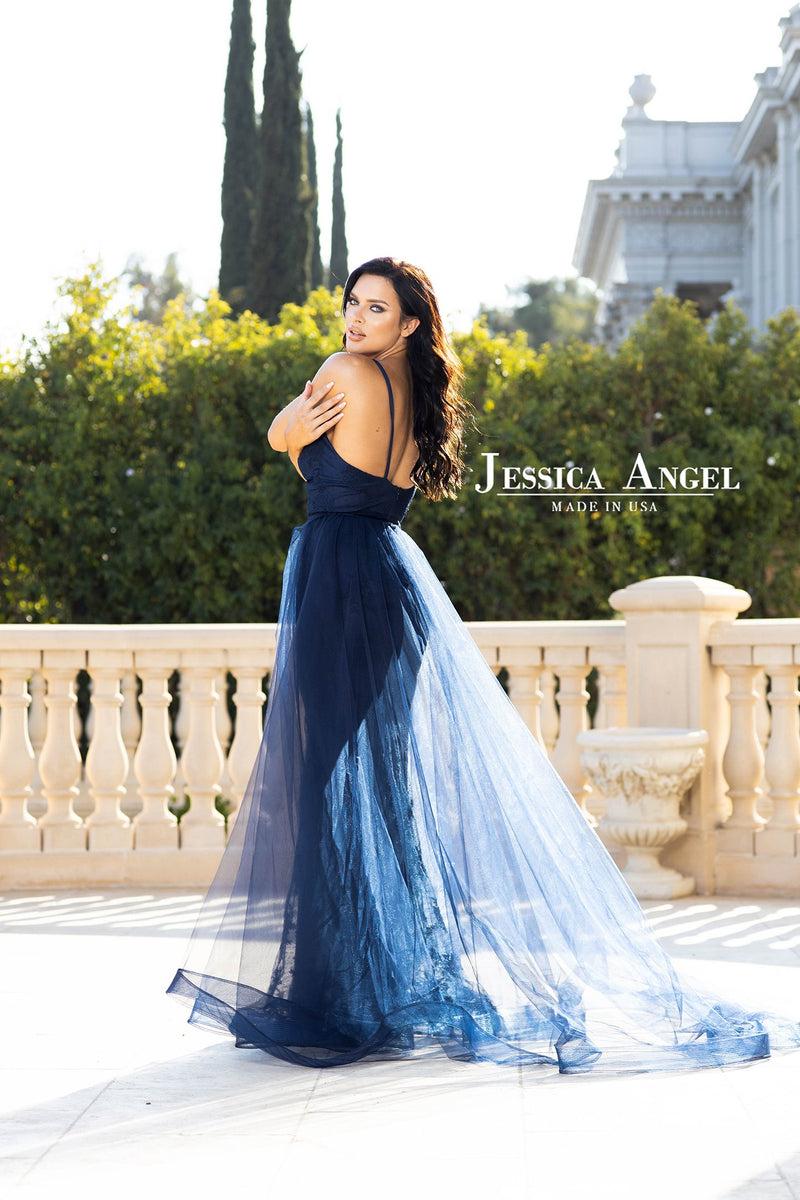 The Jessica Angel formal wear collection offers a wide variety of designer gowns made with expert craftsmanship and impeccable style. Whether you're looking for a simple, classic silhouette or a bold focal point that grabs attention, our selection of luxurious dresses is sure to satisfy your tastes and make a lasting impression on everyone in the room. Jessica Angel is known for chic stretch fabrics that effortlessly enhance a range of body types and embellished materials that look and feel like luxury. Try out a chic floor-length gown to slim and elongate your silhouette. The beautifully draped fabric is not only dramatic; it highlights your form in all the right places.